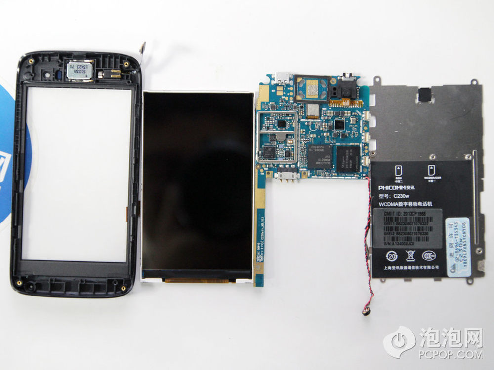 斐讯C230W是一款相对比较容易拆解的手机,不过芯片上的屏蔽罩取下比较困难。手机内部做工尚可,加上考虑到手机不足400元的价格,算是一部质量非常不错的手机。