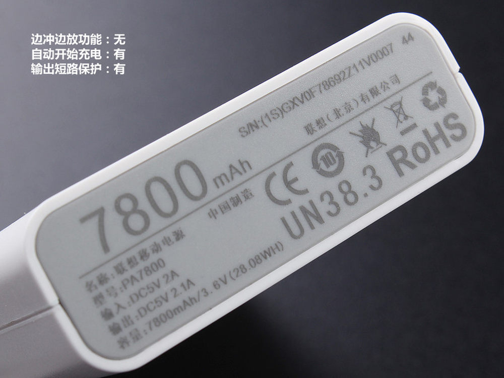 自从去年12月以后每测移动电源必提小米,因为小米那个69元10400mAH的产品不但拥有超高性价比而且还开始逐渐放开购买,挤死了不少垃圾移动电源品牌,加速了整个行业的规范化,所以此后移动电源就是大厂和正规品牌竞争的局面了,联想在这个时刻杀入移动电源,势头很猛,如果能配合上联想的手机,比起只做移动电源的大品牌来说就有了更多的优势。今天我们看到的就是联想第一款移动电源PA7800,外号小新,天猫售价只有49元。2/7