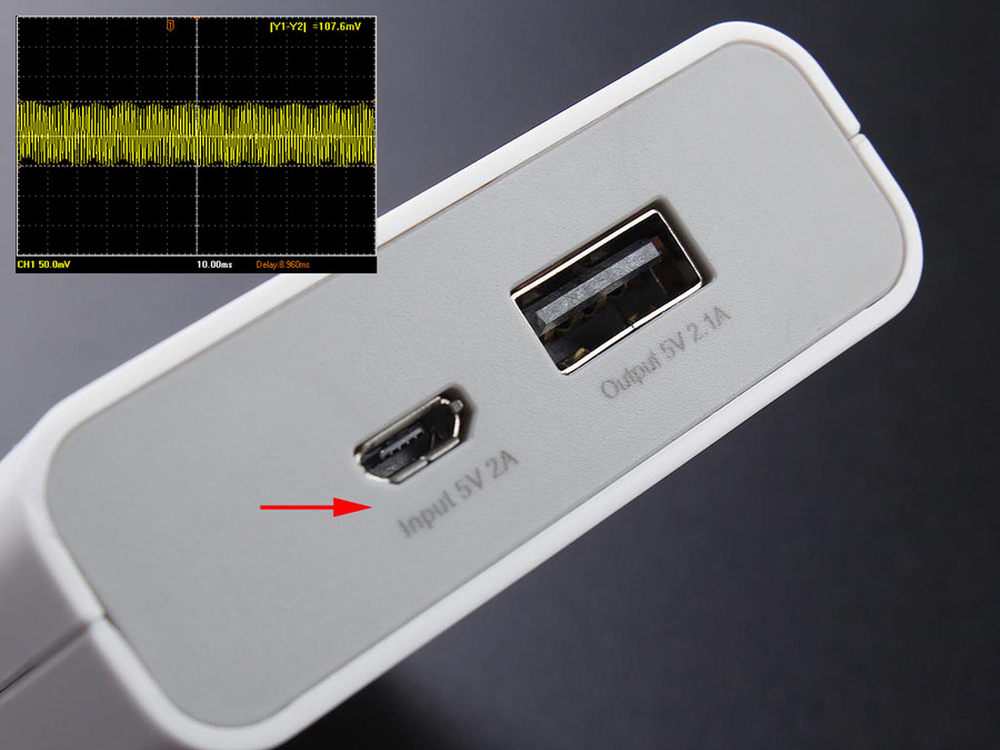 注意充电口,标注了2A的字样,实际测试中我们花了4.5个小时充满移动电源,而传统的7800mAH移动电源大约需要9个小时。