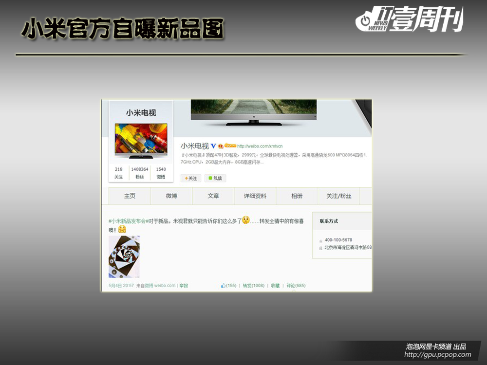 小米已经确认将在5月15日将在北京国家会议中心举办新品发布会,而发布会上最有可能发布的莫过于小米3的升级版---小米3S。不过现在这个也没有最终确认,一切都还在扑朔迷离中。就在此时小米电视官方微博也放出了一张图,暗指图中就包含了此发布会的主角。9/11