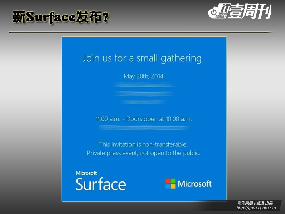 微软在邀请函上所写着“Join us for a small gathering”,其中small是否就是在暗示Surface Mini呢?一切等到5月20日便可知晓。
