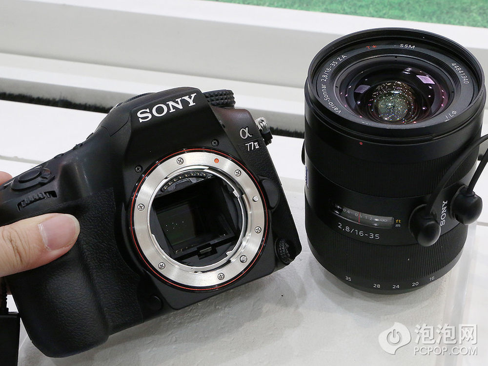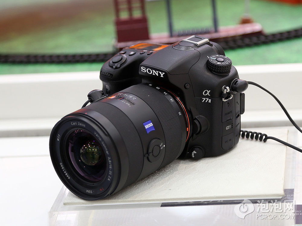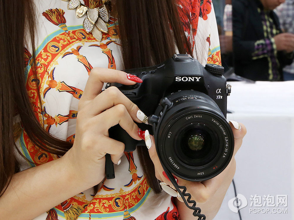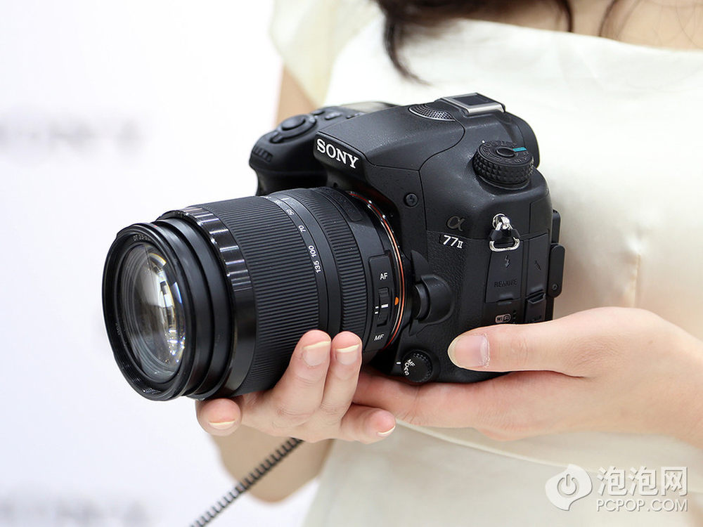 泡泡网单电/微单相机频道5月16日 今日,索尼在北京正式发布了A系列APS-C画幅新旗舰A77 II单电相机,依旧搭载约2430万有效像素Exmor CMOS影像传感器,但该传感器经过全新改良,使传感器的边缘像素也可以获得更多光线,同时影像处理器升级为与A7R/A7一样的BIONZ X处理器。而此次索尼A77 II最大的改进是具备79点自动对焦系统,其中含15个十字对焦点,并且具备12张/秒的连拍能力,单次拍摄最多可达60张。外观上,相比于之前的A77没有太大变化,具备100%%视野率XGA OLED电子取景器以及与A77一样的123万像素翻折液晶屏。A77 II机身共11个按键可进行自定义,能进行53种自定义功能组合。此外,A77 II搭载NFC功能,这在索尼单电相机上还是首次出现。2/23
