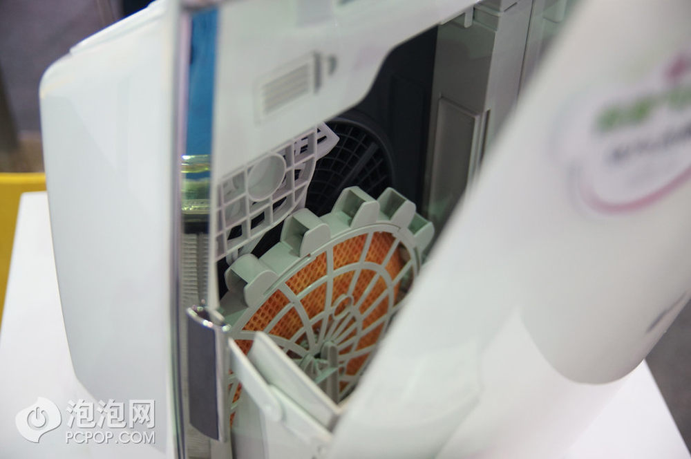 现场两款配置NPI纳米等离子技术的空气净化产品很吸引眼球,华丽的外观肯定能捕获女性用户的芳心,事实上它们也非常适合女性使用。它们会捕捉空气中的有害物质和氧自由基,两种模式均可以净化空气生成水从而保持肌肤活力延缓衰老。15/15