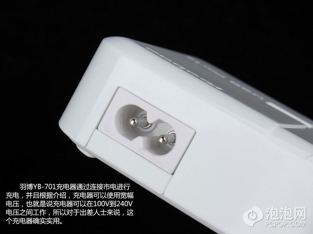 羽博YB-701充电器通过连接市电进行充电,并且根据介绍,充电器可以使用宽幅电压,也就是说充电器可以在100V到240V电压之间工作,所以对于出差人士来说,这个充电器确实实用。8/11