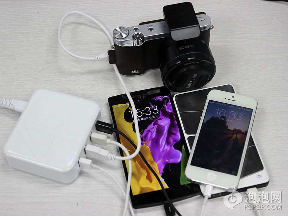 羽博的这款充电器,可以一拖四个USB接口,可以同时为4个USB设备提供充电。并且分别提供两个2.1A和两个1A的充电接口,因此充电器的最大充电电流可以支持到6.2A,相当的方便和实用。