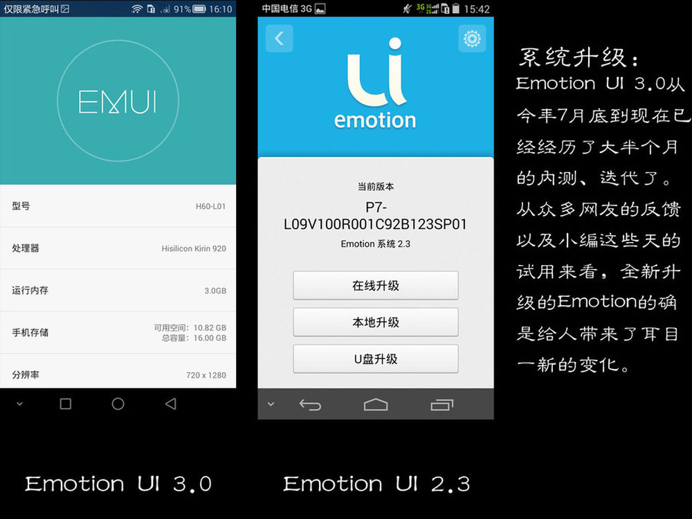 系统升级:Emotion UI 3.0从今年7月底到现在已经经历了大半个月的内测、迭代了。从众多网友的反馈以及小编这些天的试用来看,全新升级的Emotion的确是给人带来了耳目一新的变化,不仅操作上更加流畅,而且在美观以及易用性等方面都表现不错。非常期待正式版的到来。