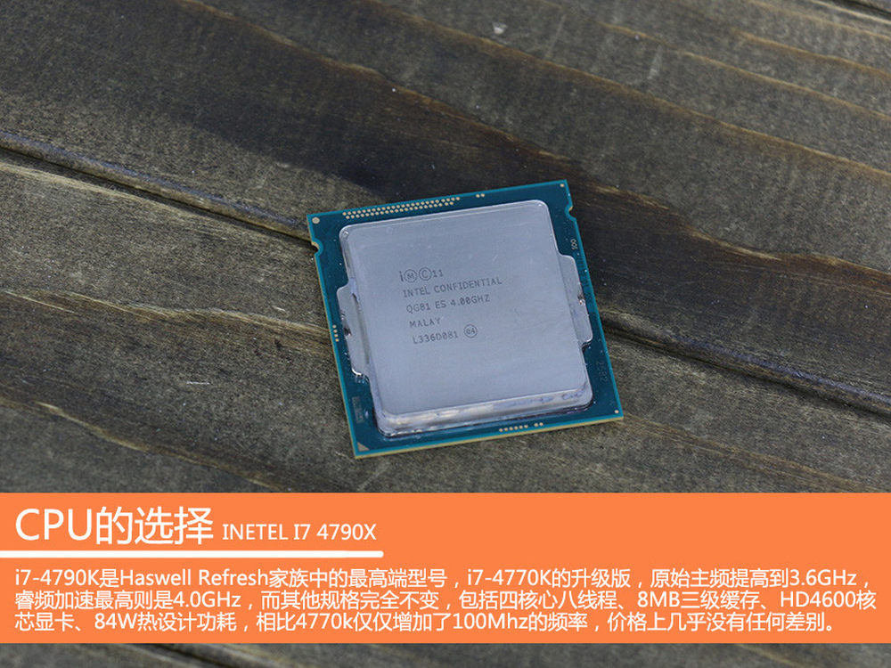 I7-4790K是Haswell Refresh家族中的最高端型号,I7-4770K的升级版,原始主频提高到3.6Ghz,睿频加速最高则是4.0Ghz,而其他规格完全不变,包括4C8T、8MB三级缓存、HD4600核显显卡、84W TDP,相比4770K仅仅增加了100Mhz的频率,而价格上几乎没有任何区别。