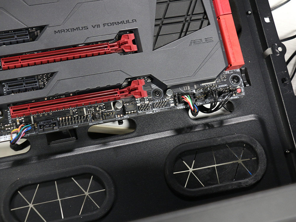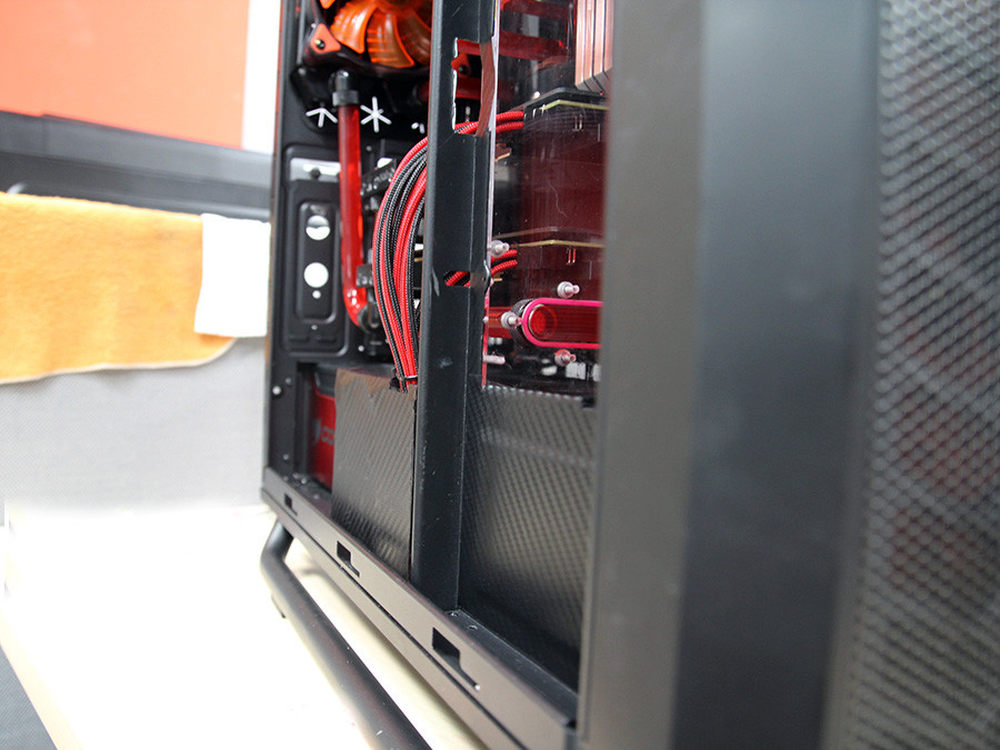 在不影响整体风道的情况下,我们使用亚克力板将多余的线材遮盖起来。26/36