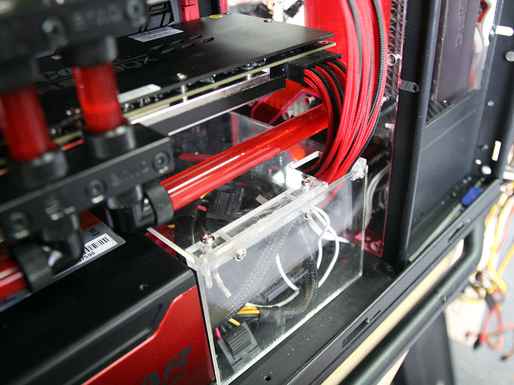 水泵笔者就塞在原硬盘位下方,使用延长杆与水泵链接,水泵上方在加一块亚克力板用于固定和支撑水箱。22/36