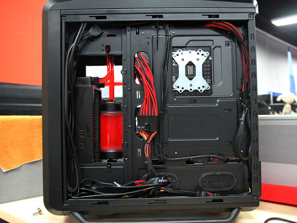 开始最烦人的理线,背部差不多就这样了,剩下的线材我们放到机箱正面去。25/36