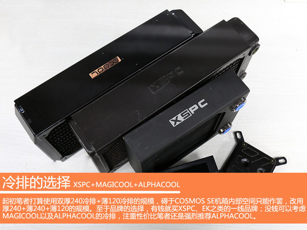 嗨大家好,我又来装机了。本次水冷装依旧使用硬管方案,不过多了一个新技术——“水道模块”这个概念,谈到这个概念就不得不从硬管水冷的历史说起,硬管这个概念起于2013年初,到2013年底开始风靡各大MOD论坛,国内论坛在2014年初开始正式兴起,在2013年年底的时候模块化水道开始渐露头角,到今年CJ上国内模块化水道作品开始正式登陆,秉着常识新技术的原则笔者这次的装机同样使用水道模块,至于教程这篇文章就不过多阐述了,稍候笔者会另开一篇教程。