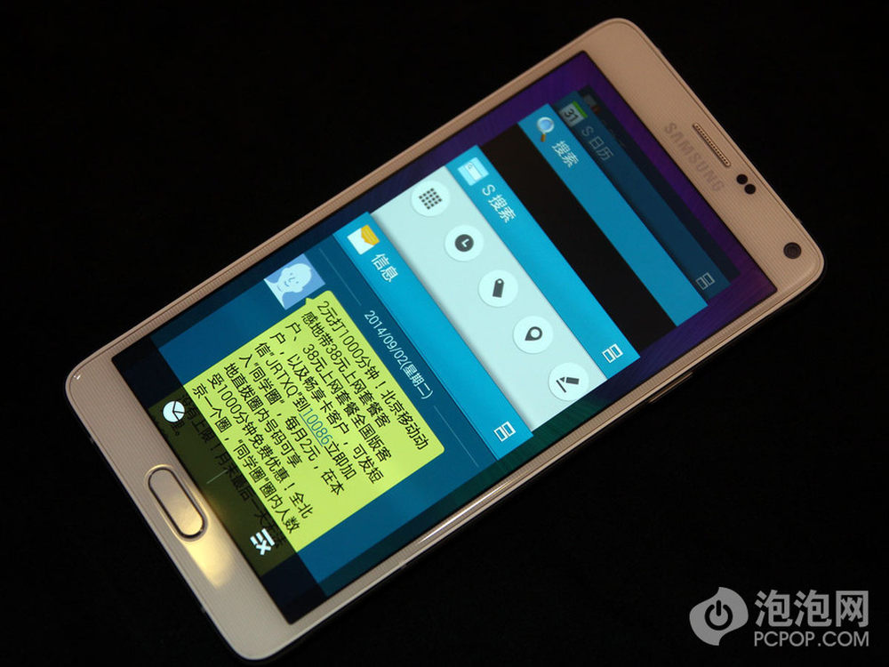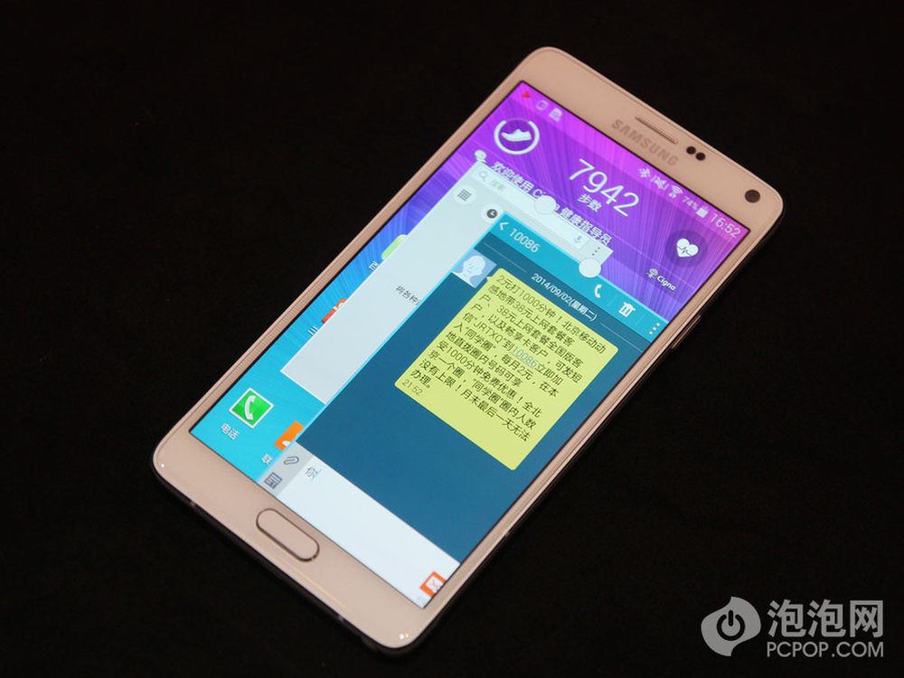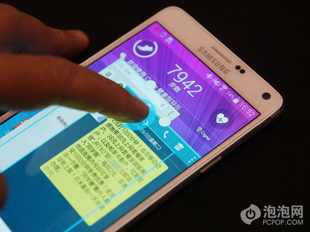 三星GALAXY Note 4方面,屏幕延续了5.7英寸屏幕,分辨率提升到2K,而SuperAMOLED则保证了屏幕显示体验。5.7英寸、2K分辨率、SuperAMOLED,这三个关键词已然是旗舰手机屏幕显示在最佳描述,而GALAXY Note 4上新增的动态锁屏、与4K电视互动等功能,则彻底引领了大屏幕手机的新标准。5/34