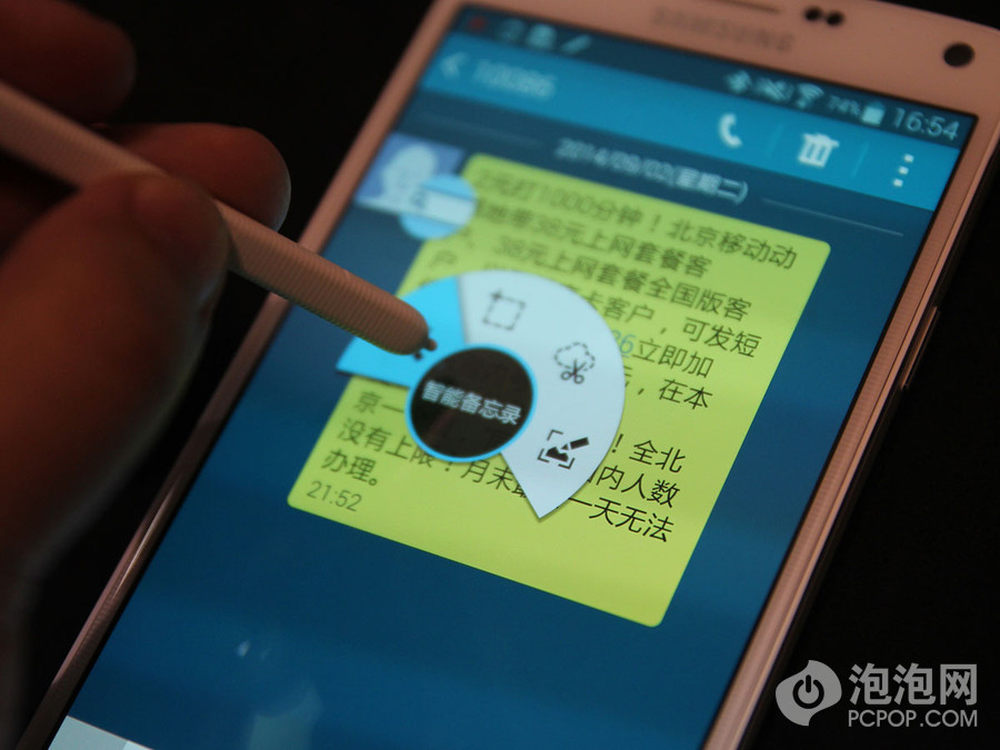 GALAXY Note 4增强了浮窗指令功能,新增的“随拍图文编辑”可在任意界面上自由选择文本,用来复制、分享和保存,而用户还可以进行任意组合指令,即可分享。