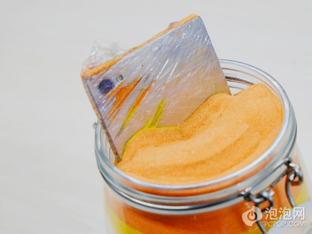 大家猜猜这个玻璃罐是用来做什么的?想不到吧,其实我们将要进行评测的联想手机X2工程测试机就深埋在这个多彩色的罐子中。3/14