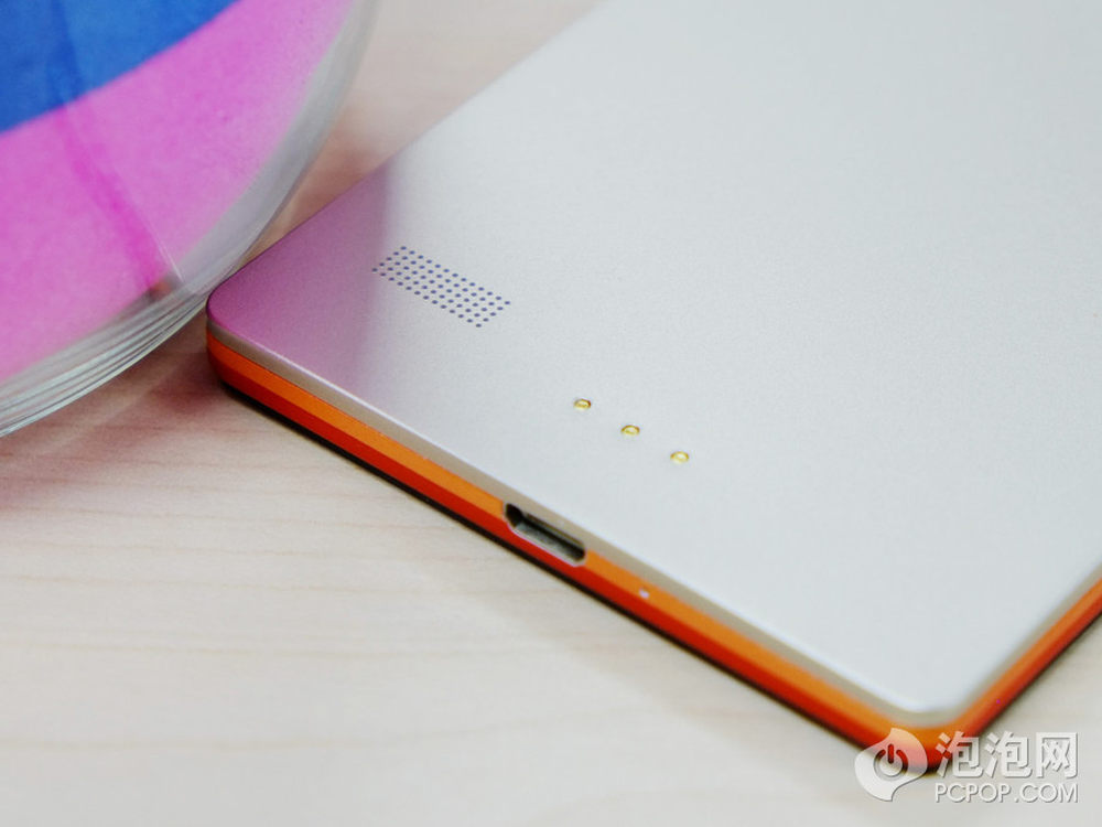 机身背部设计采用了类金属元素,在光线的折射下非常具有质感。另外,在手机背部靠下的位置上有三个金属触点,可以用来支持其它相关配件如背夹音箱等的连接。11/14
