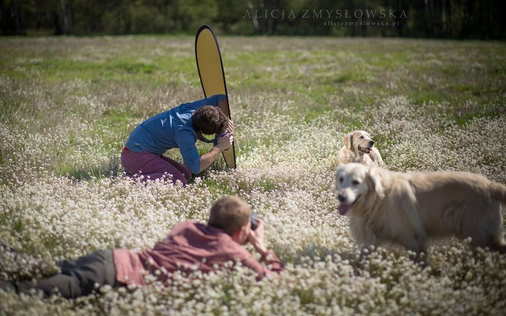 想要拍摄出这些唯美又有趣的狗狗大片,光Alicja Zmyslowka一个人可能还不太好办,所以通常会有好朋友帮忙一起拍摄,而为了达到更好的拍摄效果,对于一些场景Alicja Zmyslowka也有精心布置,比如拍摄时间、布光等,但大多都比较简易化。6/24