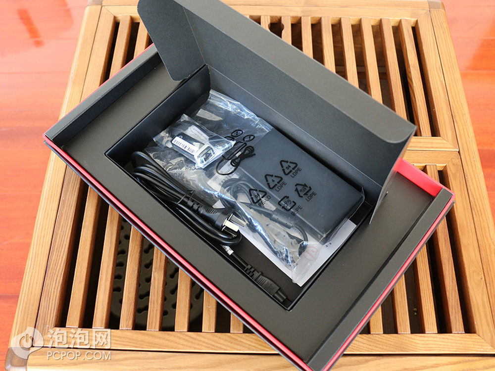 首先我们来看下OMEN的包装盒,在OMEN游戏本的下面就可以看到暗藏电源适配器、电源线以及一根USB转RJ-45网线转接口。惠普OMEN炫酷超极游戏本 京东商城 16999元预约中>> 预约地址