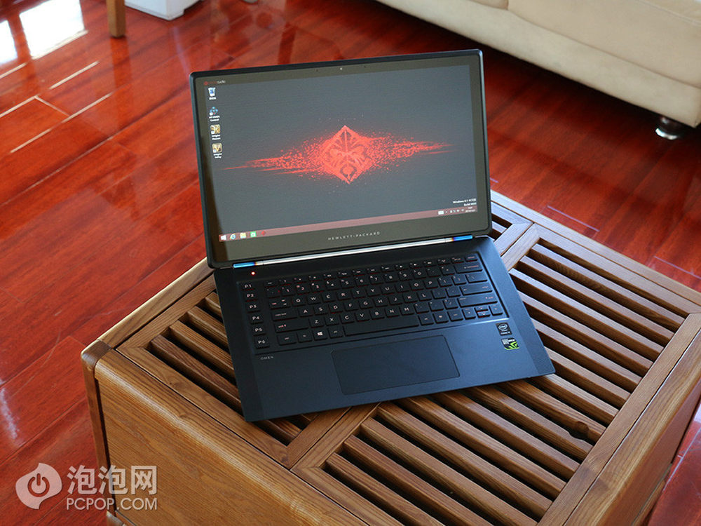 在打开屏幕之后,大家可以发现OMEN还采用了大量的红色设计元素,结合黑色的机身设计让整机更显霸气。与此同时,大家也能看出该机的屏幕部分貌似比键盘底座的面积大,看上去似乎有些不协调,我们在稍后会有解答。惠普OMEN炫酷超极游戏本 京东商城 16999元预约中>> 预约地址