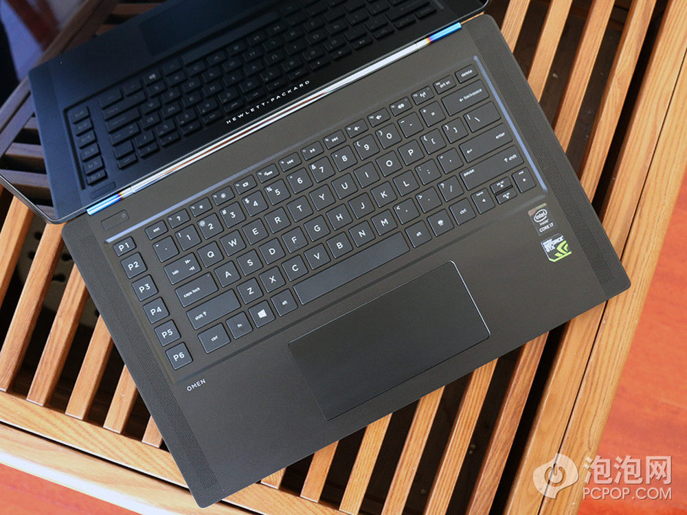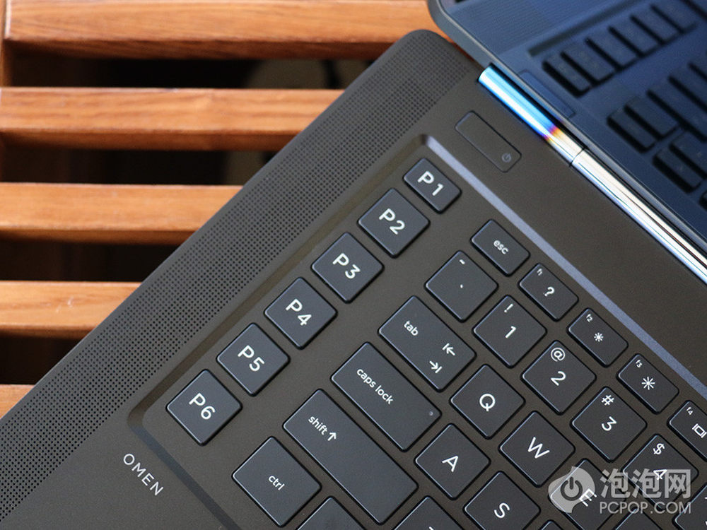 除此以外,OMEN游戏本还拥有6组可编程快捷按键(P1-P6),可以对游戏中的常用到的按键或组合编程到快捷键上,非常适合游戏玩家使用。同时,在OMEN机身左右两侧各有一排排列规则的圆形孔,这就是该机的扬声器孔,在其下部还拥有隐藏的灯光区域,我们在最后会有图片展示。惠普OMEN炫酷超极游戏本 京东商城 16999元预约中>> 预约地址