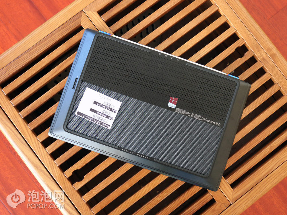 接下来我们看看机身的底部,OMEN游戏本的底部同样采用了大量三角形元素设计,机身上半部分的散热孔均为三角形设计,同时下半部分还采用了三角形突起状设计,整机设计特色鲜明。惠普OMEN炫酷超极游戏本 京东商城 16999元预约中>> 预约地址