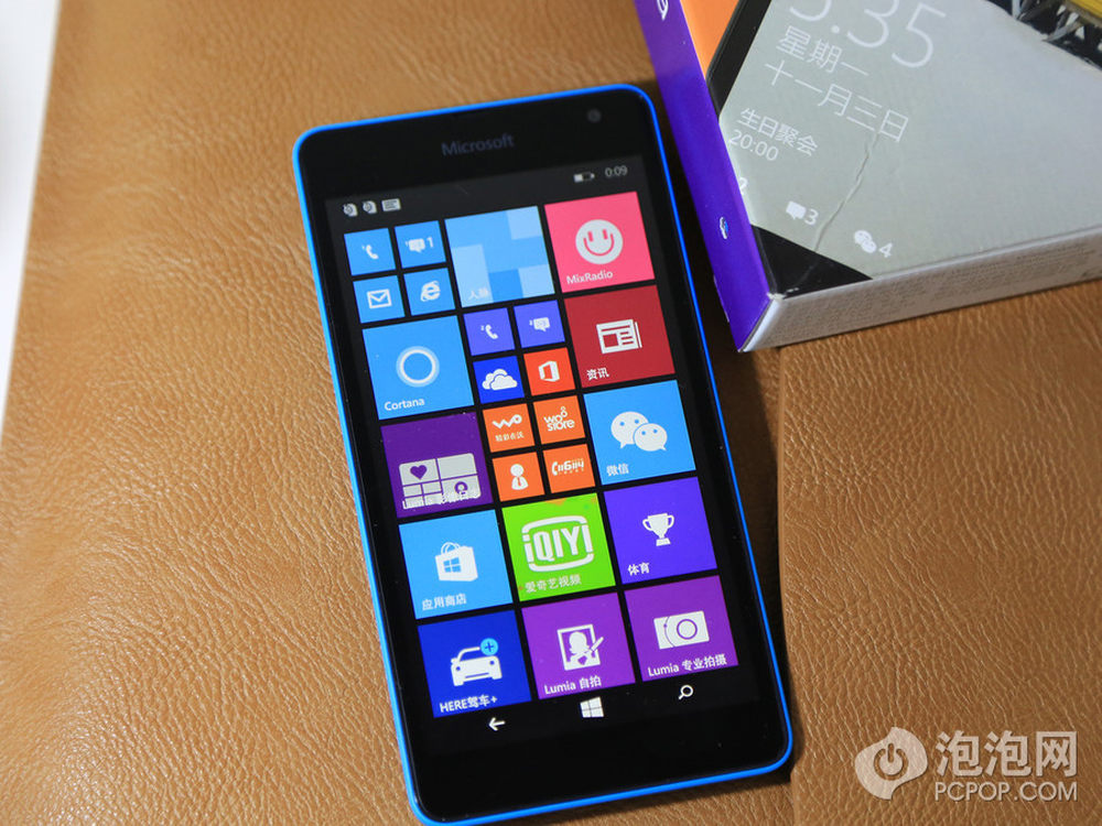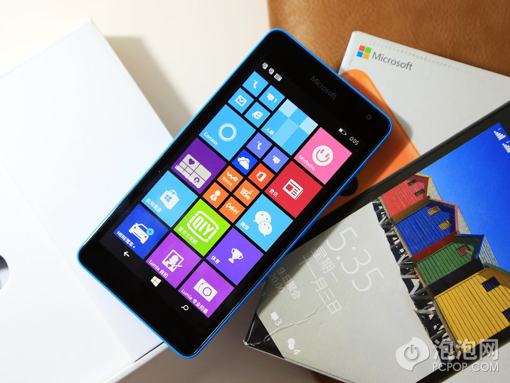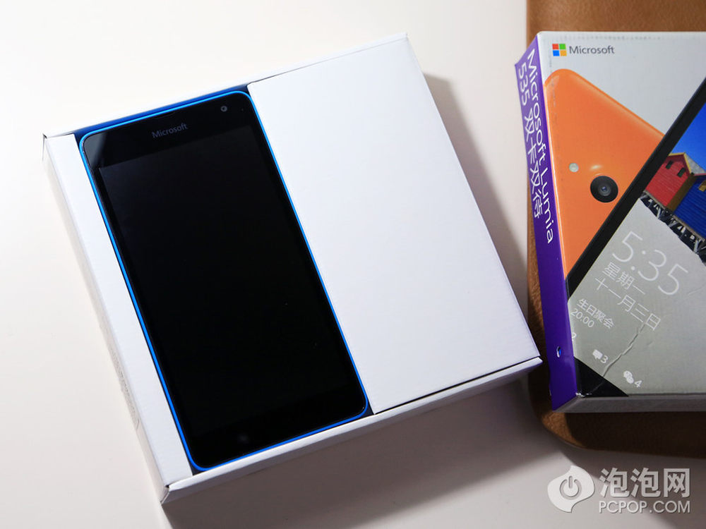 打开包装就能看到Lumia535真机了,手机采用了5英寸显示屏,屏幕尺寸大小合适,对于WP8.1系统来说,单手操作也不是什么难事。4/15