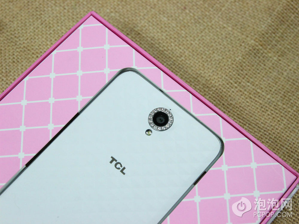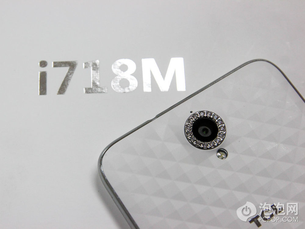 先来说说该机的亮点,它的摄像头。i718M采用一颗1300万像素的后置摄像头,周围环绕着15颗1.75mm的透明宝石,看起来非常奢华。同时可以看出它的背面采用了3D菱形纹理设计,即防滑又美观。6/16