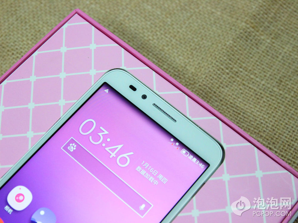 屏幕上方分布着听筒、800W像素摄像头以及环境光线和距离感应器。8/16