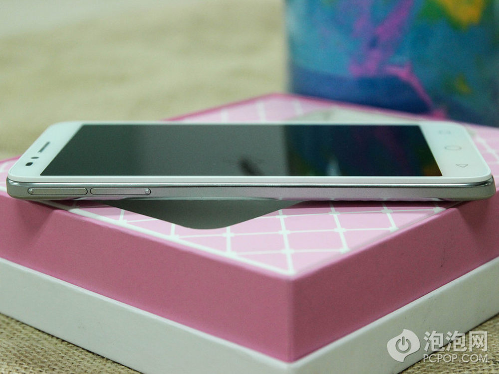 机身右侧是另一个SIM卡插槽,它的下方是音量键和电源键。按键采用和侧面边框同色的设计,外观比较漂亮,但手感稍稍偏软。15/16