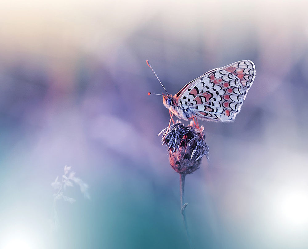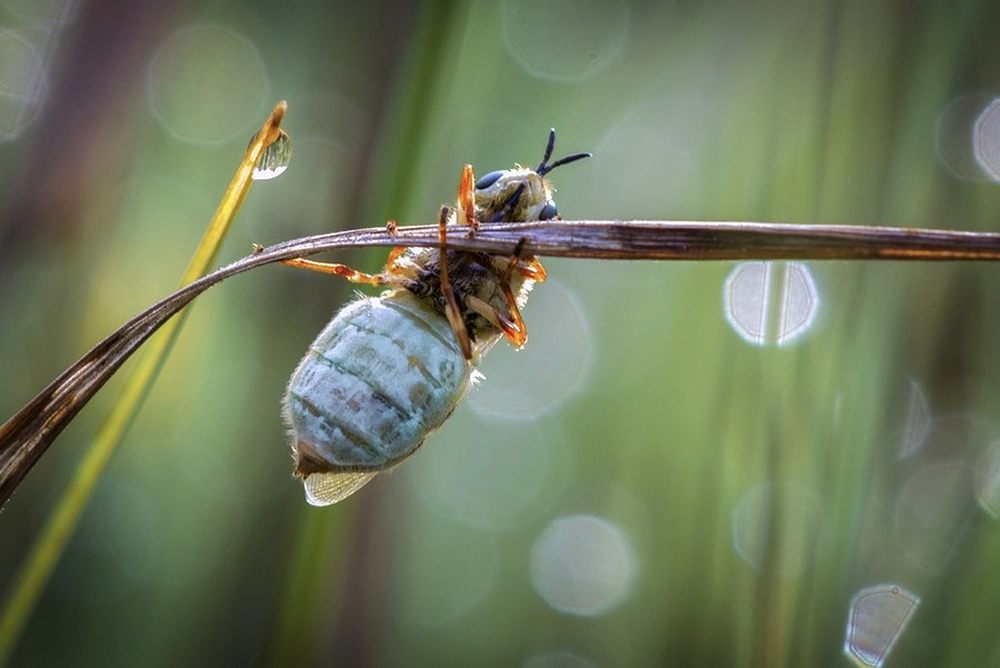 昆虫的世界虽然很小,但是范围很广。从地上爬的到天上飞的样样都有。而拍摄起来的难度也是非常巨大。不仅要把握好抓拍的时机,还要有合适的景深效果及应景的环境。很多拍摄飞行类昆虫的摄影师会随身带上一个喷壶,当昆虫飞落在自己预判的地方后就立刻用喷壶向它“开火”。被喷到一身水的昆虫一定会停下翅膀先整理自己的身体,等水没了,身体轻了才起飞。这时候,也是摄影师拍摄的好时机。3/12