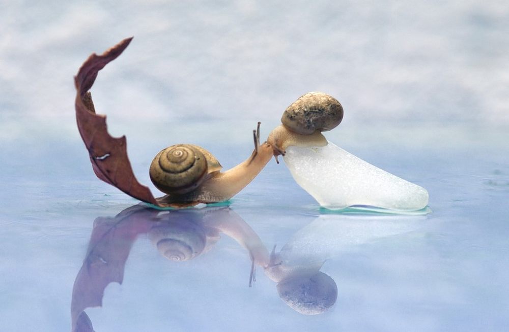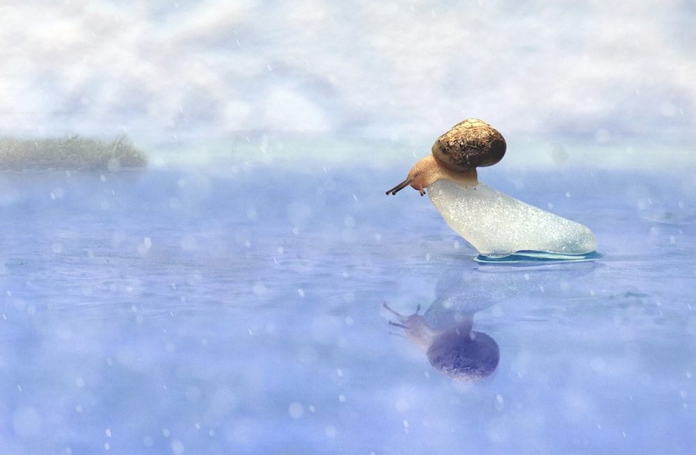 一只萌到无可救药的小蜗牛在地上缓慢的挪动着,换作平日,一定不会有人在意这么个小家伙。但是在摄影师的镜头下,我们很有代入感的看到它出现在了镜头中。远处虚化的地方隐隐约约可以看见很多光斑,也可能是水珠挂在叶子上产生的效果。4/12