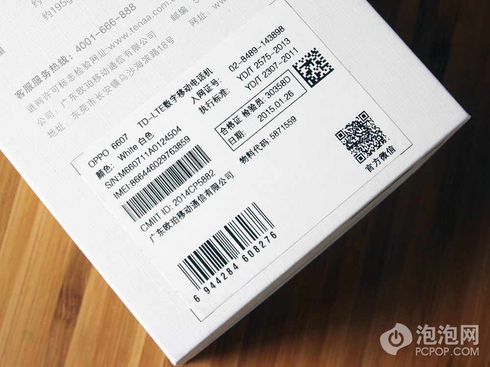 OPPO U3的手机编号为6607,而我们拿到的这款是白色,在包装盒的侧边有清晰的标识。6/23