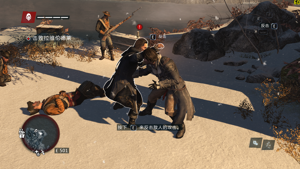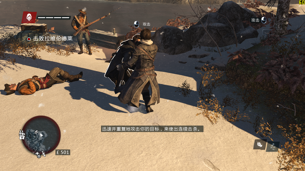 开场动画结束后进入 了教学关卡。操作上与前作无异,熟悉刺客信条系列的玩家可以无压力直接上手。第一个任务是杀死眼前的刺客。6/35