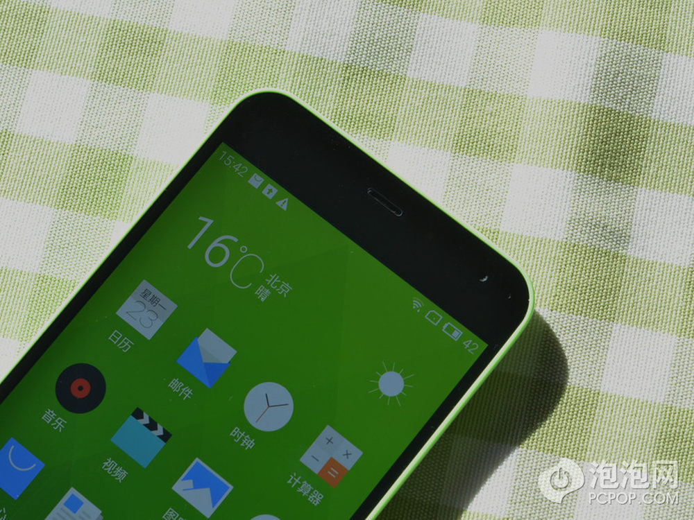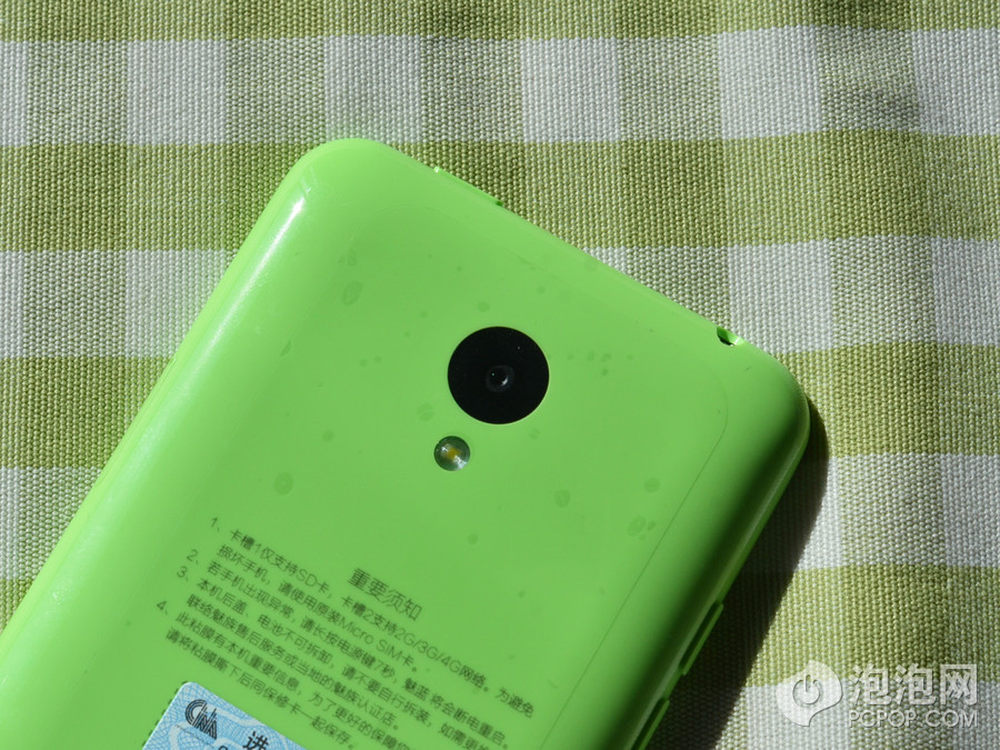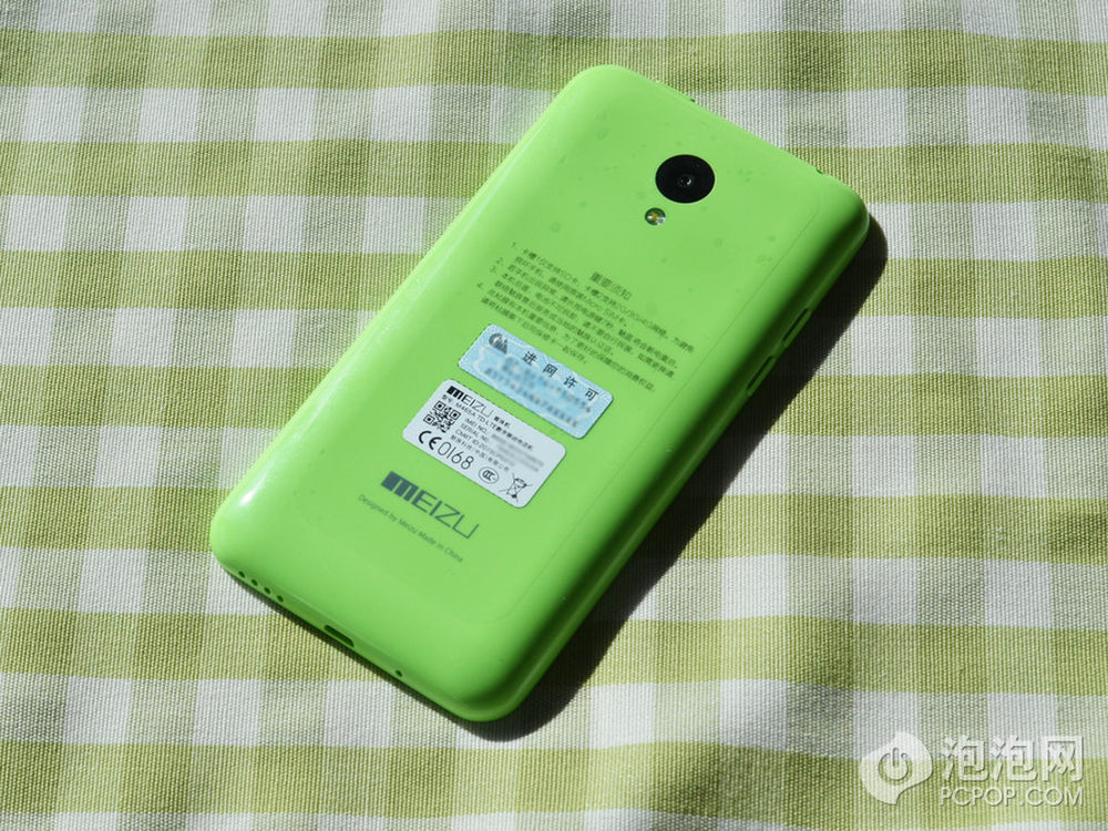 魅蓝 YunOS 定制版的背面工艺和魅蓝标准版相同,和 iPhone 5c 手感高度一致,绿色的机身看起来也非常小清新。11/18