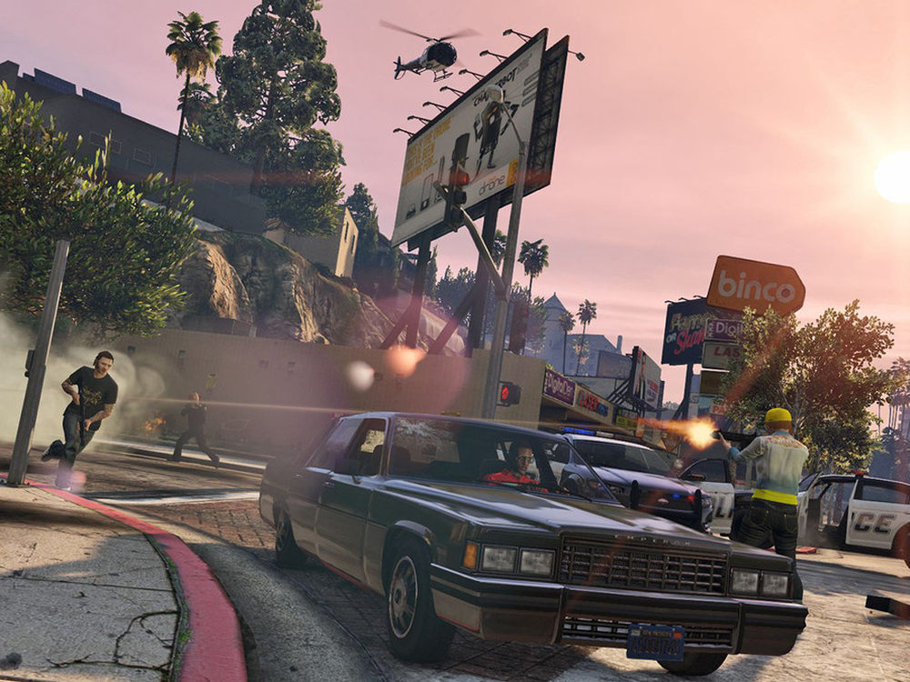 《侠盗猎车手5》(英文简称:GTA5)是《侠盗猎车手》系列中的第五部,是一款动作冒险类视频开放式游戏,由Rockstar North制作,Rockstar Games发行。游戏采用新版雷霆引擎(RAGE引擎),游戏故事发生以美国洛杉矶及其周边地区为原型的城市Los Santos,是现实地区中的洛杉矶和南加州。制作单位拍摄了超过25万张相关照片,并且研究了人口调查和汽车销售数据,以建立游戏中的世界。