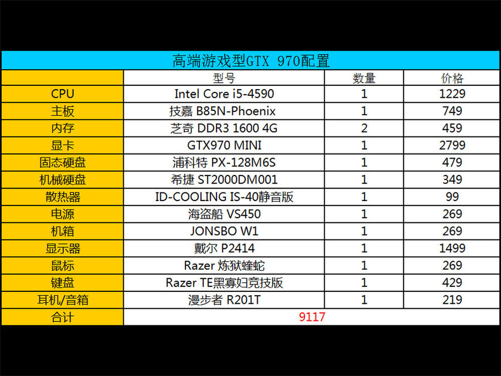 最后的高端游戏型配置:GTX 980单卡4000以上的售价仍然遥不可及,所以并没有出现在小编为各位土豪列出的配置清单中,然而Intel Core i5-4590与华硕 GTX 970 MINI的搭配性能已经很强力,绝大多数游戏玩家的需求都能够满足,接下来一两年之内的最新单机大作基本上都可以无压力应对了。