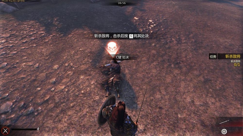 敌军武将出场后,会开始格斗教程。分别按下鼠标的左右键加上上下左右的拖动鼠标会进行对应方向的攻击和防御。由于是教学关卡,敌人武将完成使命后顺利被子龙秒杀。在濒死阶段可以按下C键对其进行斩杀。9/32
