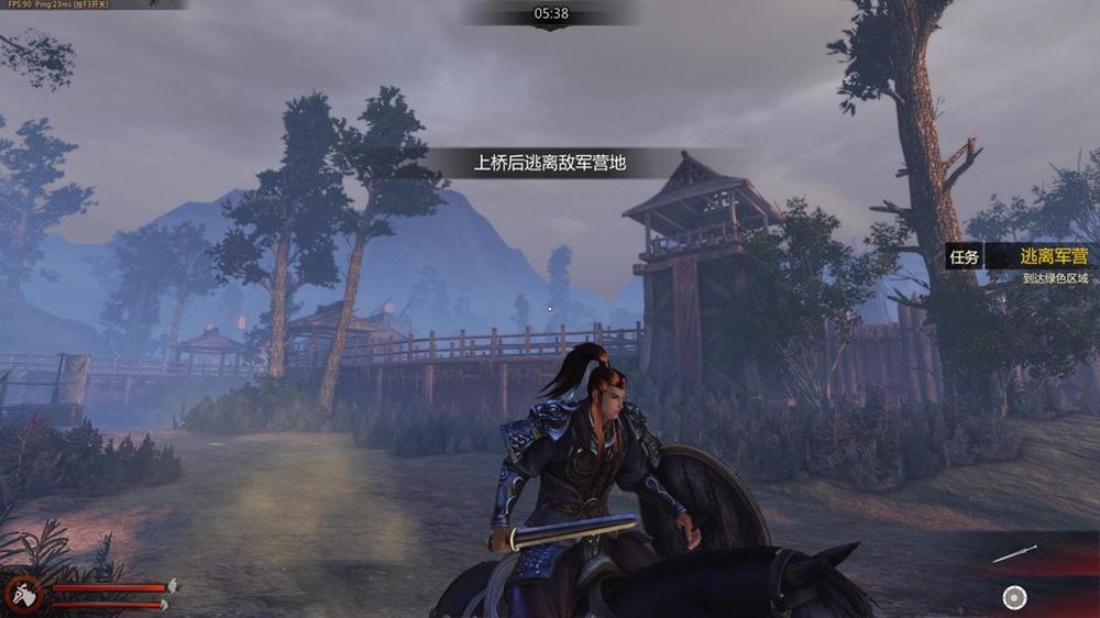 之后进入的是基础乘骑教程,接近马匹后按下E武将会翻身上马。之后玩家自主控制行进方向和视角即可。12/32