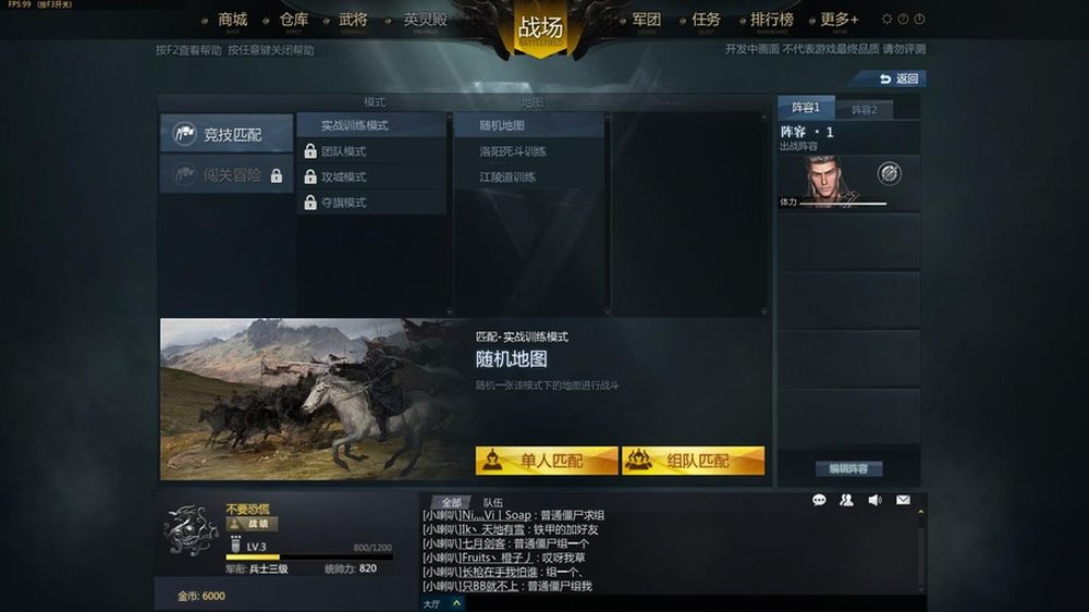 战场模式分为了竞技匹配和闯关冒险两种模式,竞技模式包含团战、攻城和夺旗三种PVP模式,闯关冒险目前只有僵尸模式这一种PVE模式。随着玩家等级的提升各种模式会逐一解锁带给玩家更多的选择。14/32