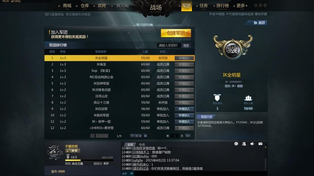 游戏内的行会被称为军团,尽管是内测但依然有大量玩家涌入,小编刚进入游戏的时候军团列表已经有九页,到截稿时仅一天时间就增长到十二页了。15/32