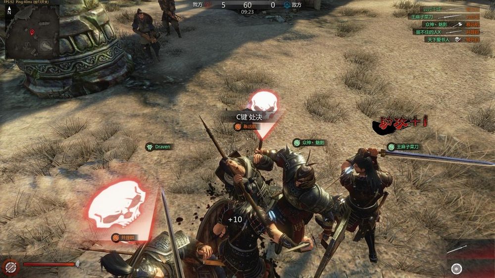 斩杀效果比较血腥,在这里由于盾牌的阻挡所以小编并没有看到斩杀的过程。在后来的体验中才越发的感觉到,太血腥了,联想到最近国服的暗黑3之后,不禁感慨这待遇差距有点大啊。10/32