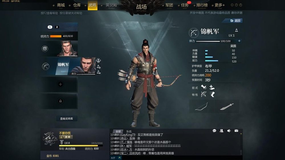 在人物选择界面,小编由于初始的职业选择的是青州盾卫,所以只有这一个任务可以选择。在玩家等级提升后会有先锋、骠骑、神射和奇行共四种职业功选择。新玩家只有基础人物,对应职业的高级武将需要抽奖或者攒武将之魂才能获得。18/32
