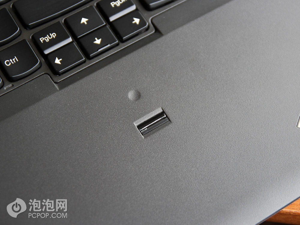 在触控板右侧区域,用于指纹识别装置。不过相比W540,取消了色彩校正仪。