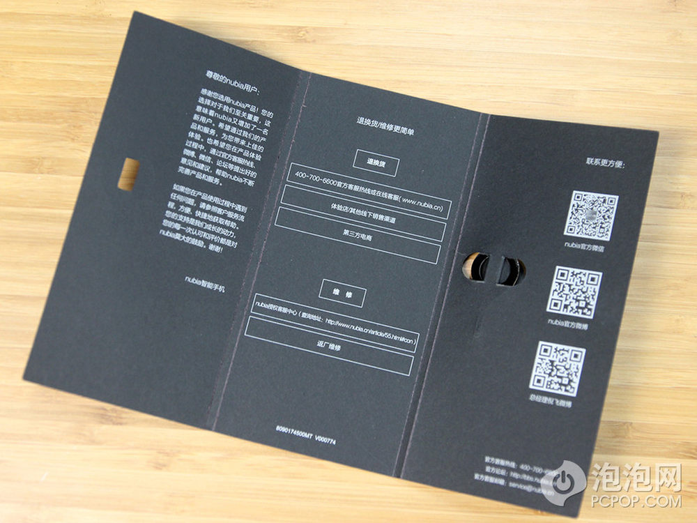 在配件中还有nubia致消费者的一封信,上面介绍了nubia手机的售后情况。