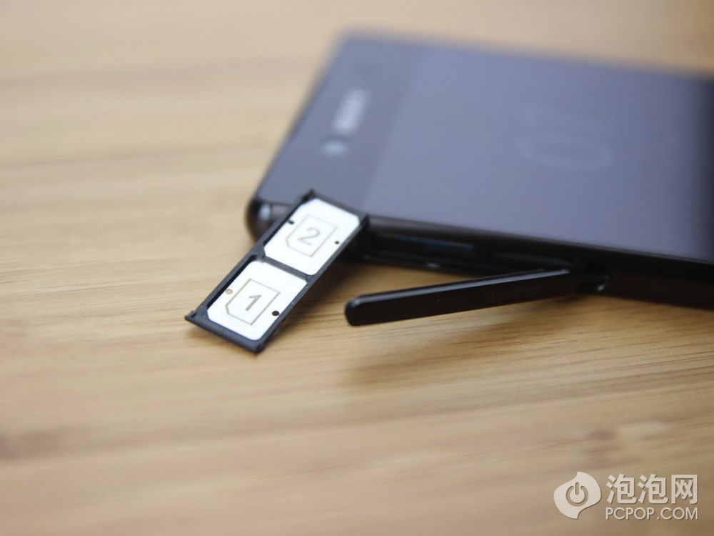 Z3+Dual卡槽特写,左侧为SIM卡槽,右侧为存储卡拓展槽。11/15