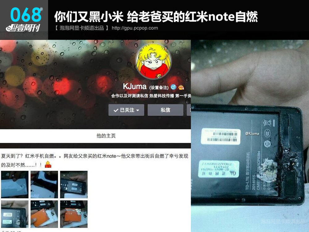 上周,微博上有人爆料称:给父亲买的红米note带出去自燃,幸亏发现的早!看了曝光图片之后,我忽然发现自己有预测未来的能力,貌似我已经看到了整件时间的结尾。从曝光的图片来看,后盖已经严重变形,打开后盖更是惨不忍睹,电池尾端损坏严重。但从网友评论里,我们也看到了“红米手机”官方微博的回复,并称会有客服人员进行处理。但多数网友认为这不是正品!又黑小米!