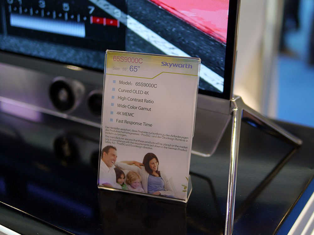 在这次IFA展会上,98寸8K电视是创维一款重点展示产品,这款电视的屏体由LGD提供,分辨率高达到7680x4320,是全高清的16倍,并具备4K转8K功能。另一个重点展示的产品是65G8210,这款产品具备当今最受关注的显示技术——HDR,即高动态范围图像,可以提供更多的动态范围和图像细节,能够更好地反映出真实环境中的视觉效果;另外,它的背光由108个LED灯组成,可根据图片亮度自行调整。Air系列产品(G9200和G7200)从今年初就一直是创维的旗舰形象产品,其厚度仅有7.5毫米,加上简洁大方时尚设计,让现场媒体记者赞不绝口。创维OLED 4K电视S9300也是展厅里的一大亮点,其屏体仅有4.9毫米,加上其超高的对比度、极大的广色域和广阔的可视角,大大地提高了产品的用户体验感。