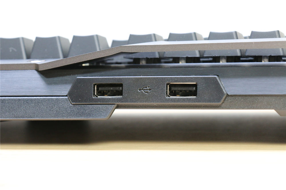 在扩展性方面GK2000也达到了目前机械键盘中最高的规格,键盘后方内建了两个USB接口和两个3.5mm音频接口,玩家可以非常方便的在GK2000上接驳自己的游戏耳机和专业鼠标等设备。9/17