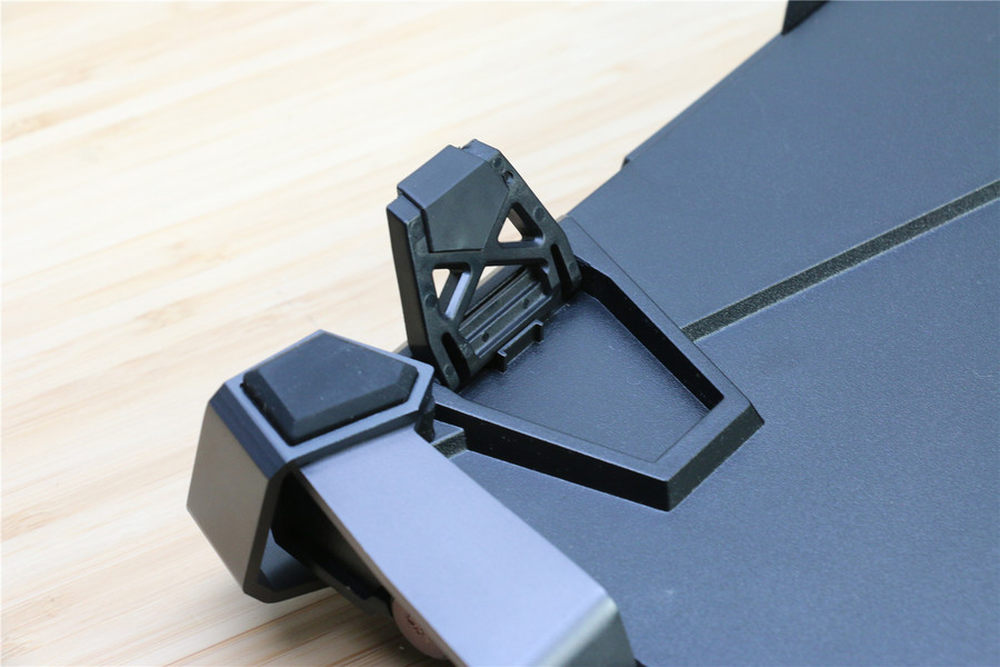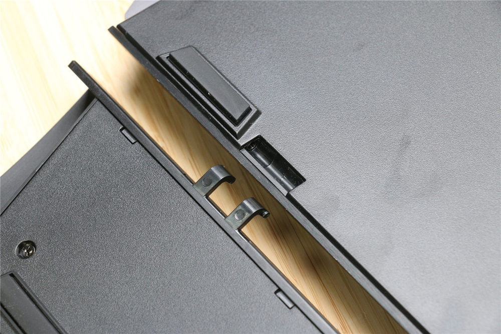 撑脚方面GK2000是常见的纵向折叠式撑脚,底部有厚实的橡胶垫包裹。手托通过卡扣与键盘连接,结构强度和连接效果都不错。10/17