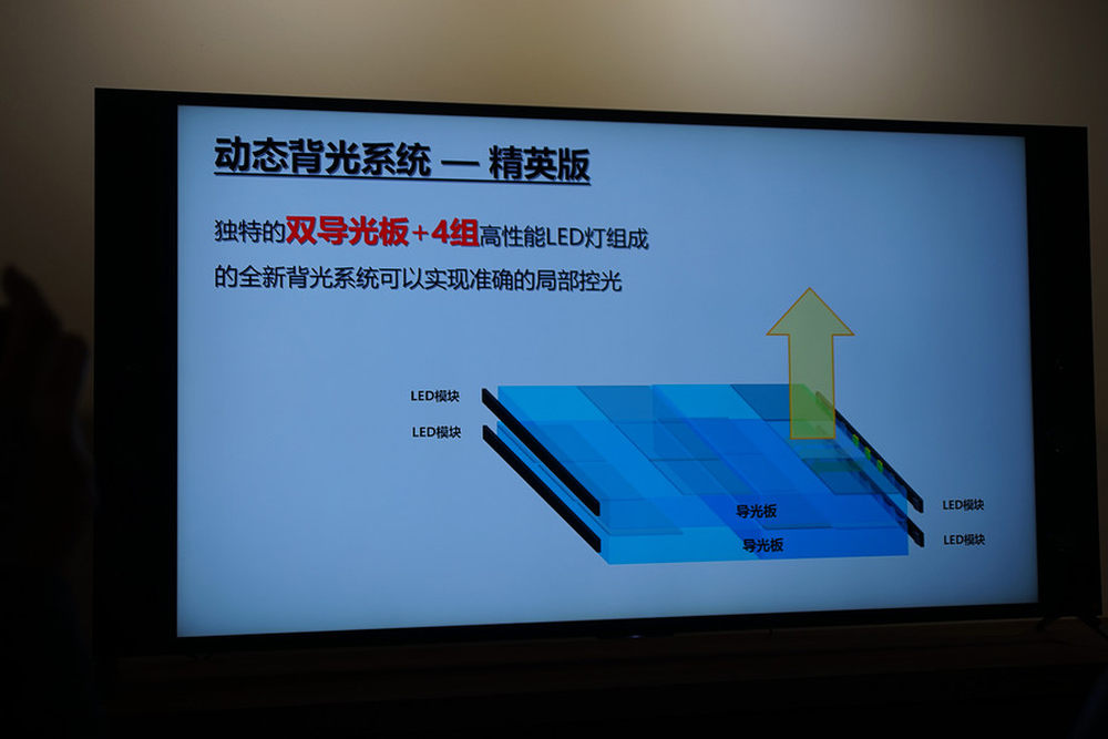 索尼动态背光系统精英版可以看做是优化设计的侧入式背光,它的背光条多达4组,而且导光板也是双层设计,这样的搭配可以让LED背光针对某个或某些区域做相对独立的背光输出,接近于直下式背光的分区设计却拥有更高的峰值亮度,背光控制最简单的侧入式结构无可同日而语。7/13