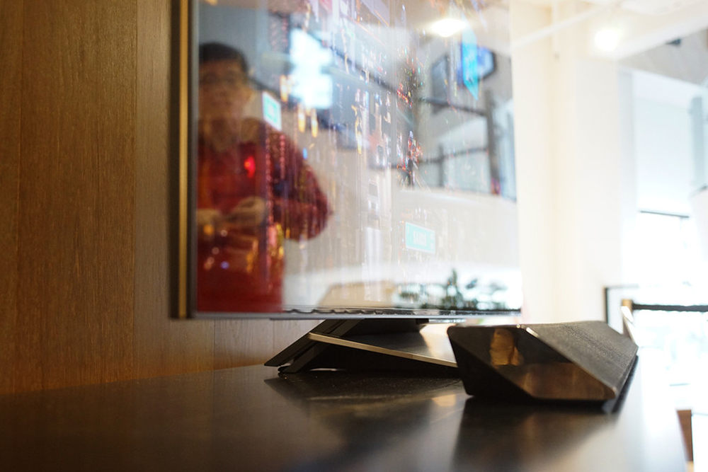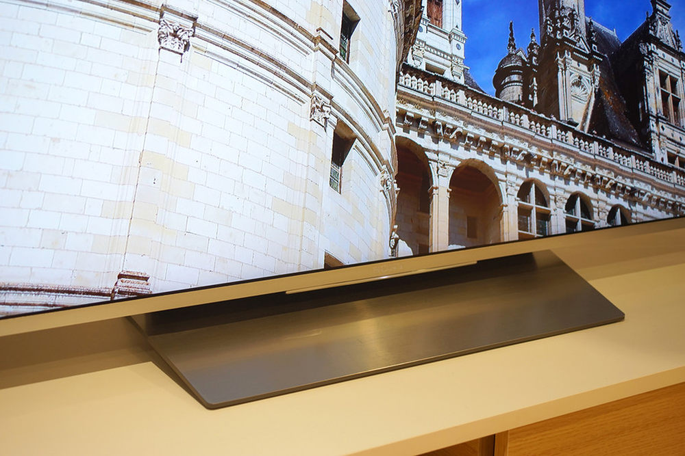 看完了技术介绍我们再展示一些X9300D的外观细节,全新设计的底座最能体现出简洁几何线条的元素,与15年产品风格相比,电视正中超大面积的铝合金拉丝底座将明显提升整机的豪华质感。10/13